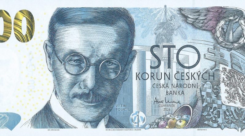 Czech Republic 100 Koruna Commemorative Banknote 2026 – Vilém Pospíšil & Czech National Bank